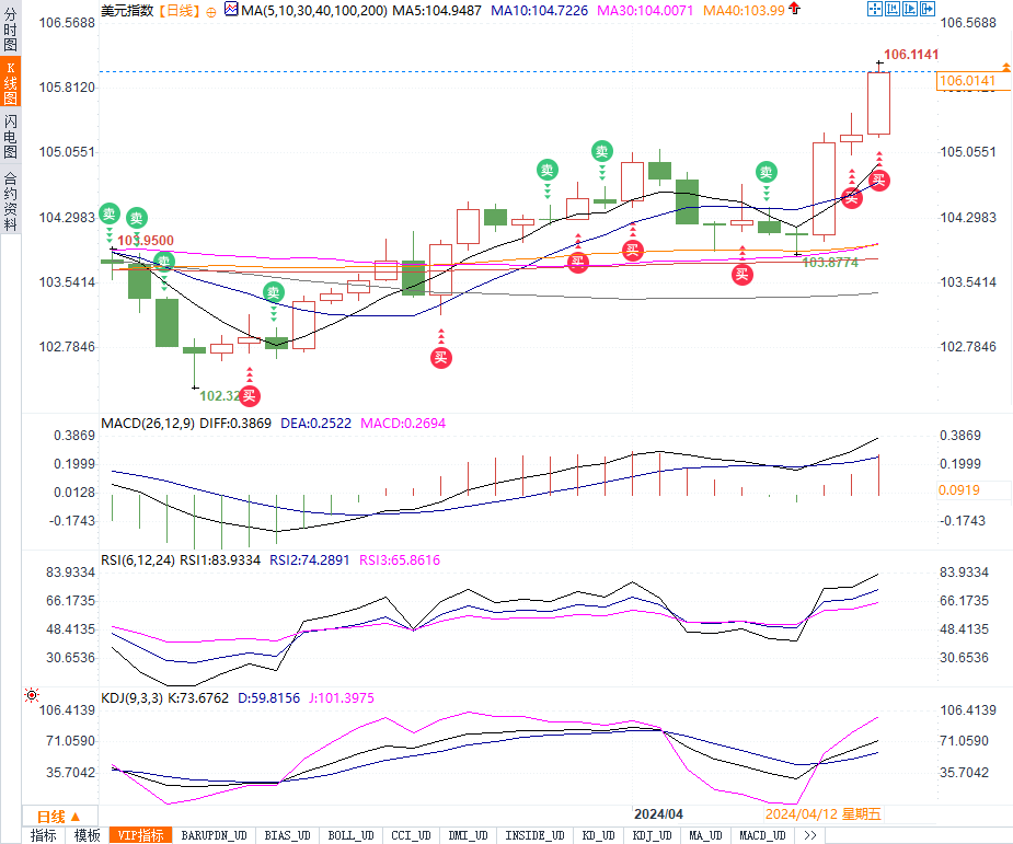 美元指数的上涨主要得益于美国国债收益率的上升以及有利于美元的通胀数据环境。此外,美联储官员指出今年降息的可能性较小,鹰派押注的增加也为该货币提供了支撑。