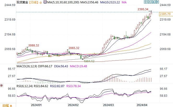 现货黄金日线图来源:易汇通北京时间4月12日13:46 现货黄金 报 2388.79 美元/盎司