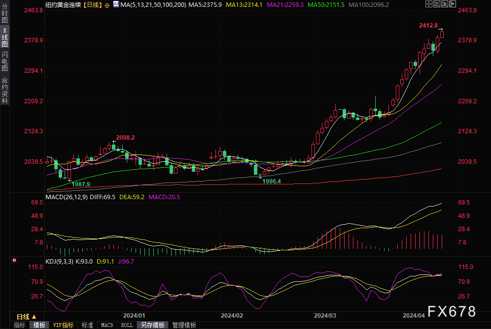 ——周五(4月12日)亚市盘中,黄金期货维持日内大涨走势,最高曾触及2412.8美元/盎司,刷新历史高点,目前位于2405美元/盎司附近,较周四结算价上涨逾30美元。Kshitij咨询服务团队(Kshitij Consultancy Service)周五最新撰文,对黄金期货、白银期货、原油期货和铜期货后市走势进行前瞻分析。
