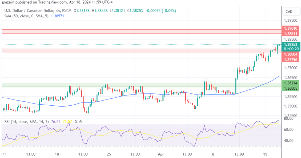 突破1.3850将为测试下一个阻力位1.3880 – 1.3900打开道路。