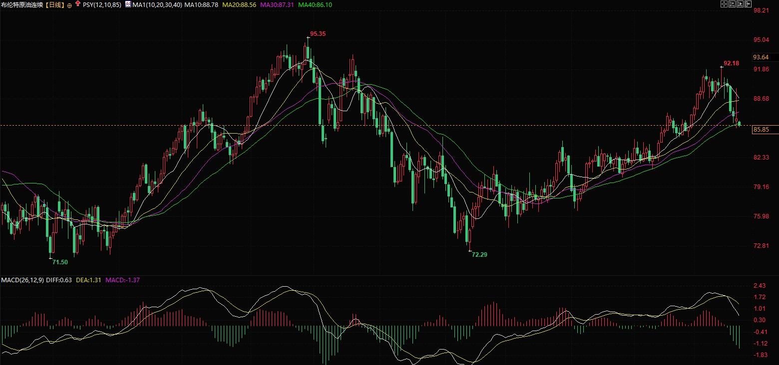 布伦特原油日线图北京时间4月22日11:14,布伦特原油价格报85.83美元/桶