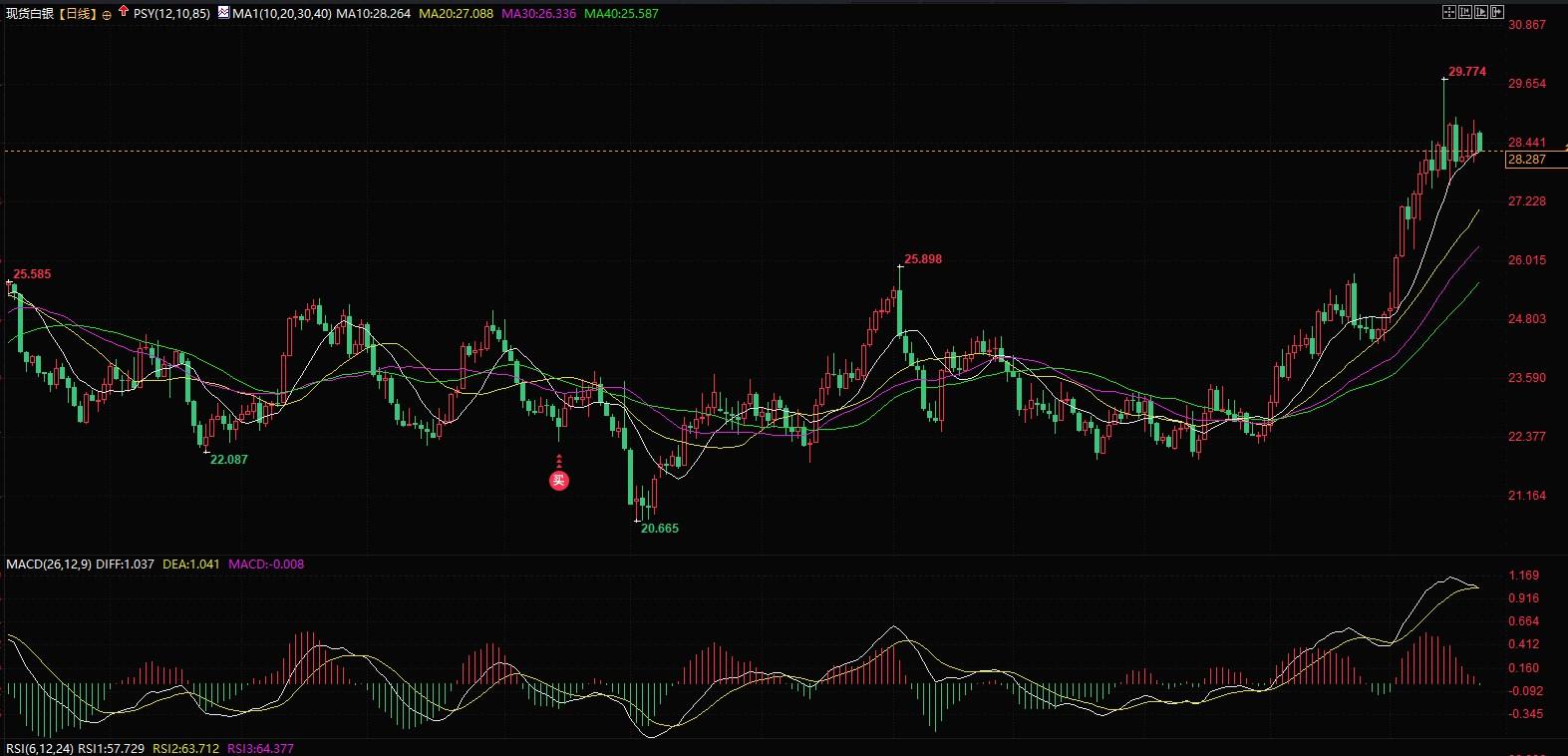 现货白银日线图北京时间4月22日10:30,现货白银报28.30美元/盎司