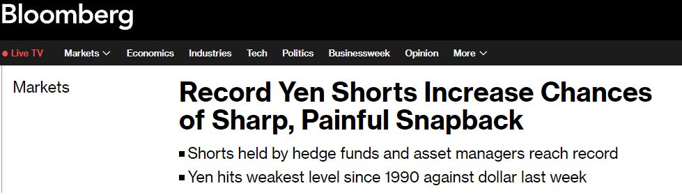 根据计算,这也是九种主要货币中最大的空头头寸,这使得日元特别容易出现反弹。