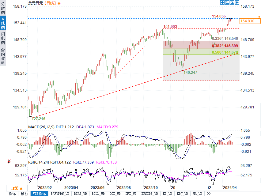 在发出上述最新警告之前,美元兑日元升至154.85日元,创下1990年以来的最高水平,这使市场对东京方面为支撑日元而采取干预措施的任何迹象保持高度警惕。