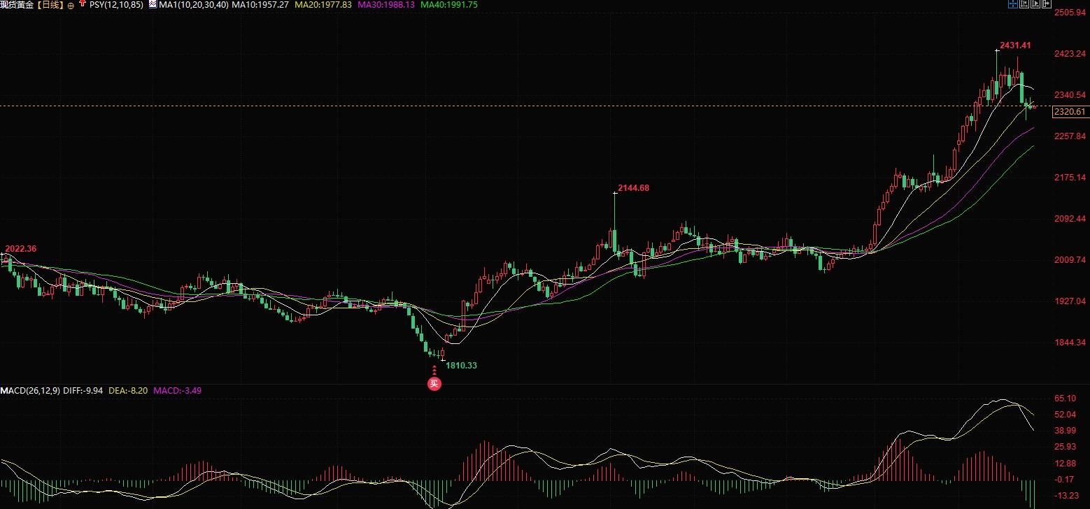 现货黄金日线图北京时间4月25日10:50,现货黄金报2320.76美元/盎司