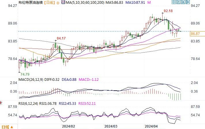 布伦特原油连续日线图来源:易汇通北京时间4月25日10:02 布伦特原油连续 报 86.87美元/桶