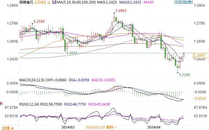 英镑兑美元日线图来源:易汇通北京时间4月25日15:04 英镑兑美元 报 1.2495/95