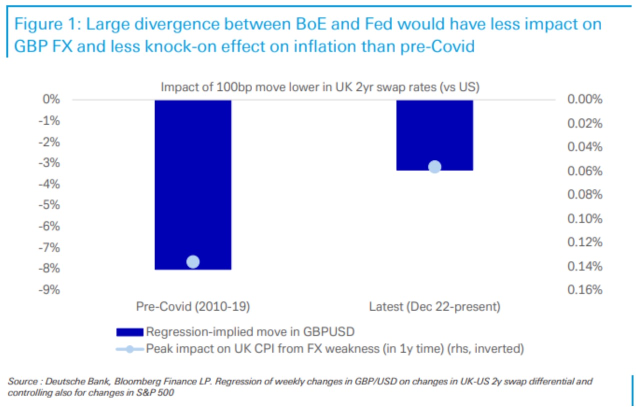 至少随着美元受到更严格的约束,英国央行暗示在一定程度上独立于美联储政策时间表的意愿可能会增强。