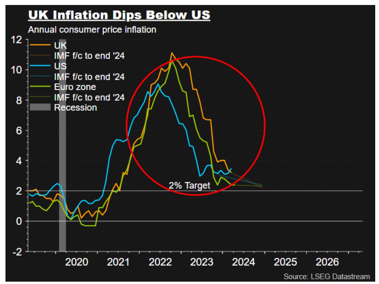目前来看,货币市场认为欧洲央行下个月加息的可能性为90%,但英国央行6月降息的可能性不到50%——英国央行在8月1日会议之前尚未完全反映出降息25个基点的可能性。鉴于美联储的首次宽松政策目前在期货市场上要到11月才会被完全消化,这种中间立场对英国政策制定者来说似乎比较舒服。