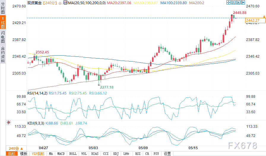 历史高点2440美元是现货黄金面临的一个重要水平,在这一水平之上的有效突破将看到反弹至2500美元心理水平的希望。