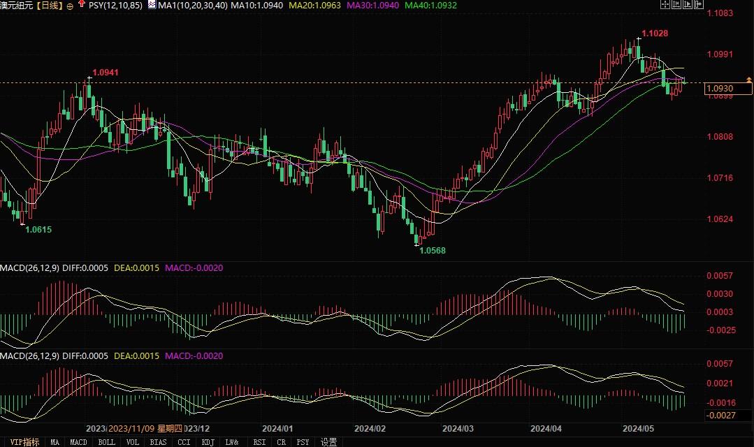 北京时间5月22日9:08,澳元兑纽元报1.0930/33