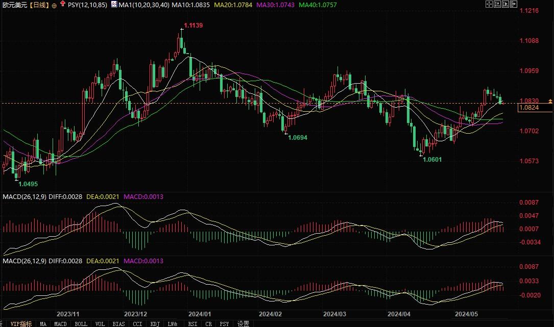 欧元兑美元日线图北京时间5月23日,欧元兑美元报1.0823/24