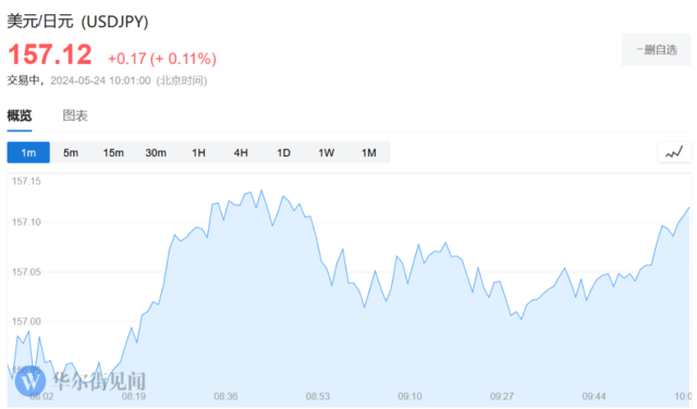 日元震荡下跌,美元/日元报157.12,韩元/美元跌0.6%至1370.05,其他亚币亦大多走低,美元/泰铢涨0.4%至36.662,美元/马来西亚林吉特涨0.3%至4.7170。