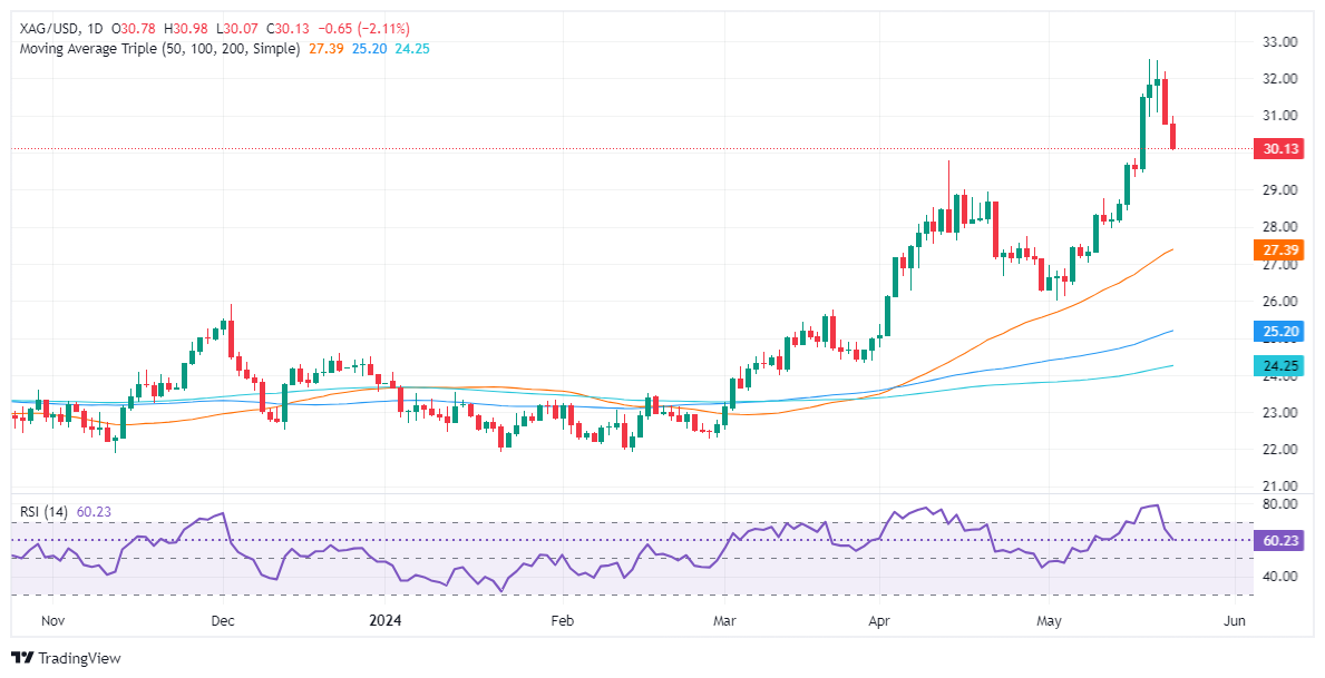 ——周四(5月22日),现货白银再度大跌逾2%,周五(5月24日)亚市,银价正接近30美元/盎司大关。FXStreet分析师Christian Borjon Valencia最新撰文,对银价技术走势进行分析。