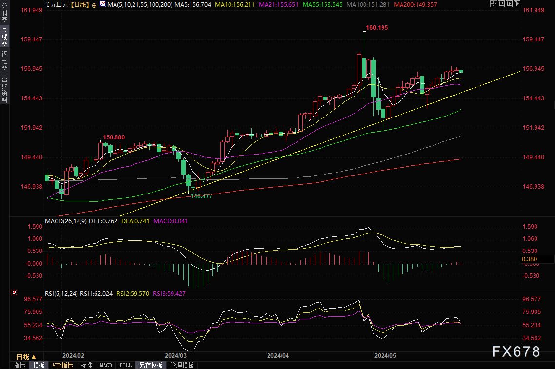 (美元兑日元日线图,来源:易汇通)北京时间12:14,美元兑日元现报156.73/74。