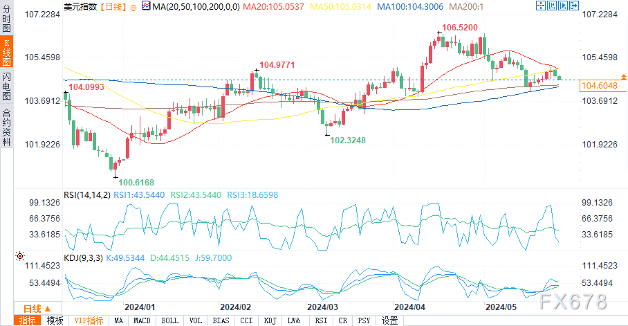 ——周一(5月27日)欧盘时段,美元指数盘中转跌,报104.6371,跌幅0.11%。欧元/美元盘中报1.0859/60,涨0.09%。英镑/美元盘中小幅上涨,报1.2747/48,涨幅0.09%。