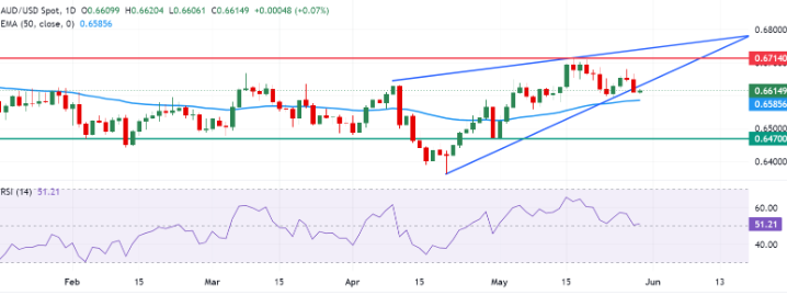 澳元兑美元可能会回到上升楔形以达到四个月高点0.6714,随后是上升楔形的上限0.6740附近。