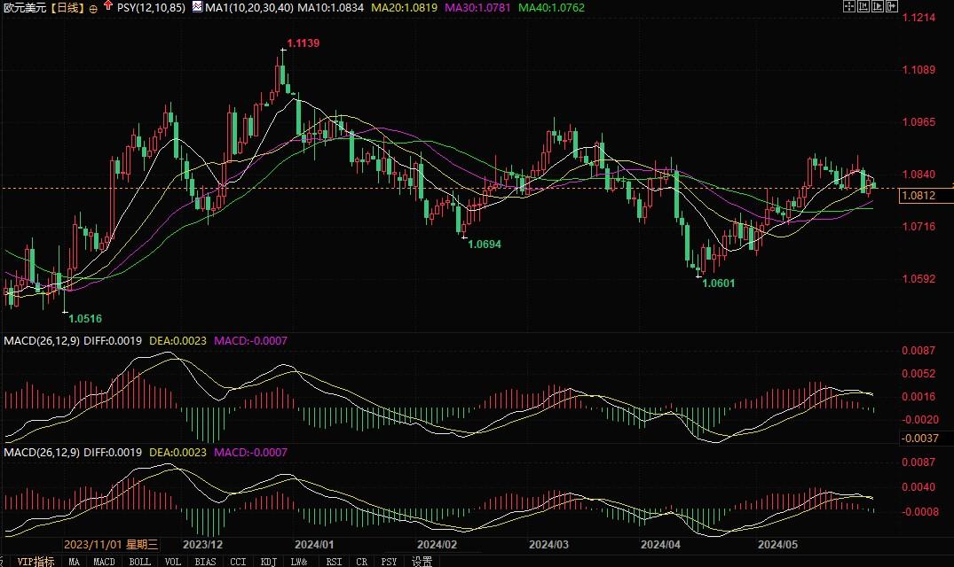 欧元兑美元日线图北京时间5月31日11:13,欧元兑美元报1.0810/13