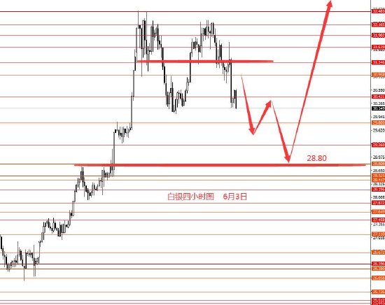 白银上周正如果预期先反弹再下跌,周图收长上影线小阳柱。从图形来看,白银此区域就是修整行情,本周延用上周框架思路,继续震荡下行修整,下方重点关注28.80区域,大概率会成为下个向上波段的转折点。本周操作建议:31.20附近做空,止损32.40,目标看向29.80和29.25和28.80区域。下个波段再抓28.80到33.20的向上波段。控制仓量,严格止损。