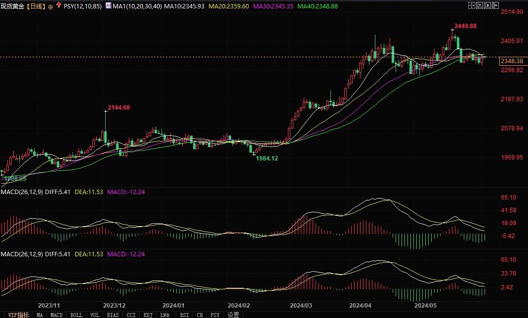 现货黄金日线图北京时间6月4日13:37,现货黄金报2347.95美元/盎司