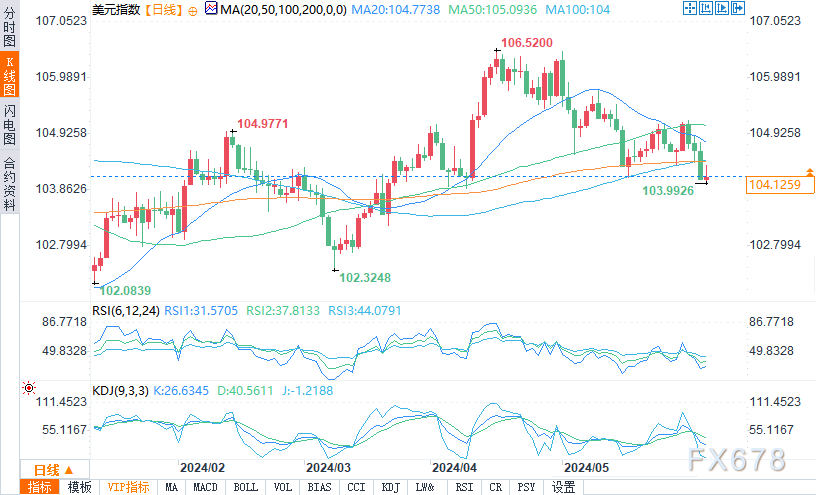——周三(6月5日)凌晨,美元指数走高后回落,最高触及104.3367。盘中报104.1276,涨幅0.06%。以下是对欧元/美元、澳元/美元、美元/瑞郎几组货币对的分析。