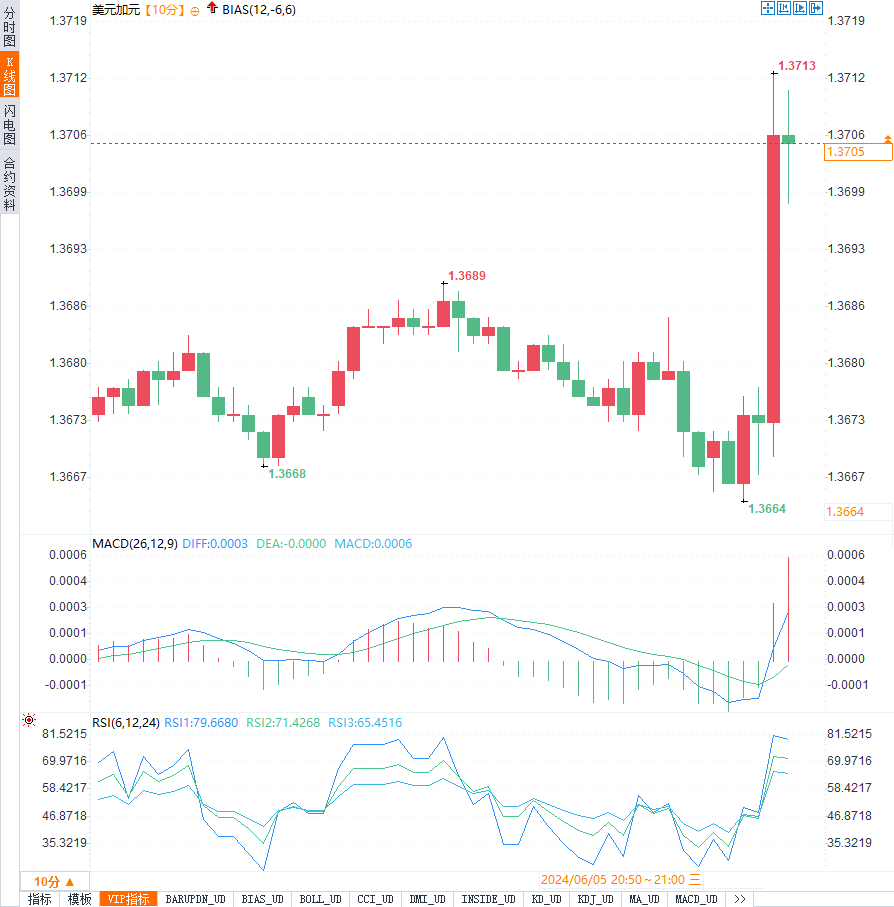 加拿大央行的降息决定推动了美元兑加元USD/CAD短线上涨约55点,最高触及1.3715,目前小幅回落至1.3710水平。加拿大S&P/TSX综合指数升至日高,显示市场对这一决策的积极反应。同时,加拿大2年期国债收益率在央行降息后下跌8.3个基点至3.973%,反映出市场对未来利率走势的预期。