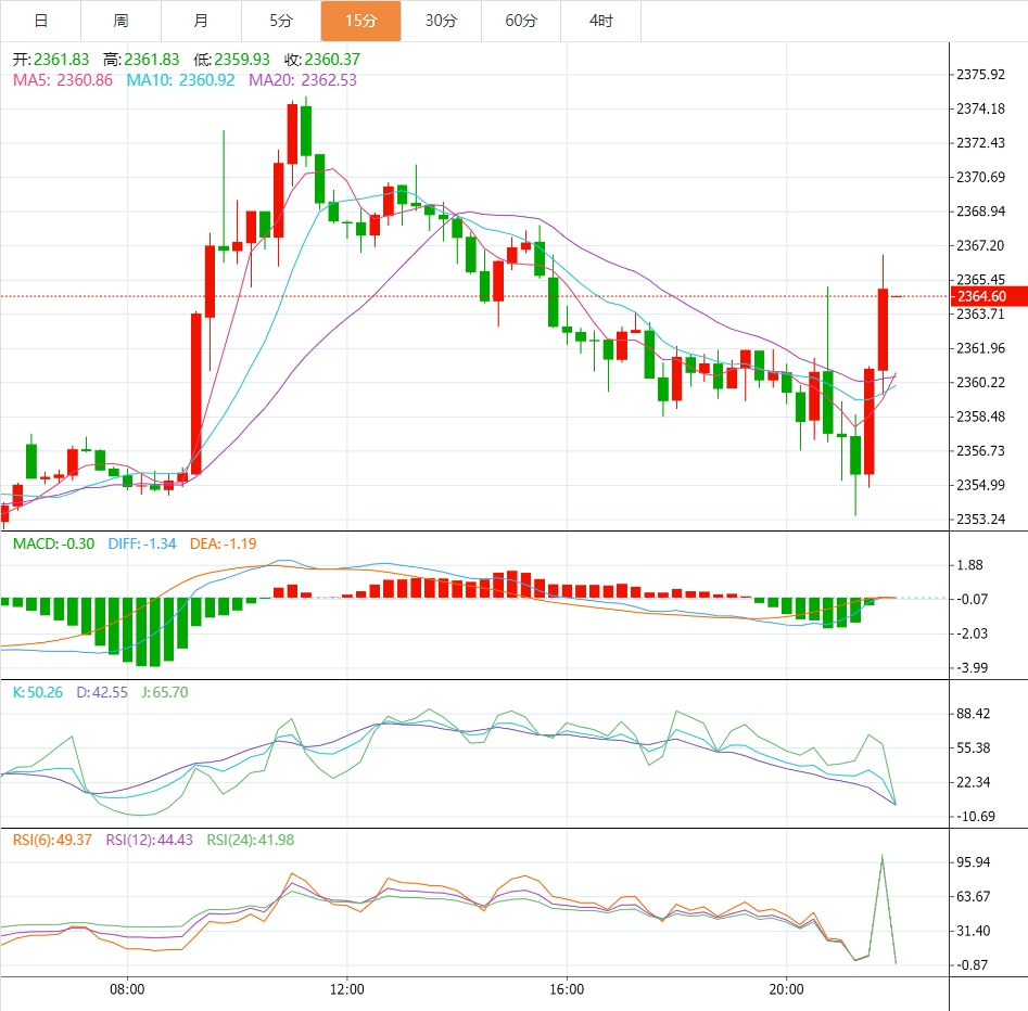 截至发稿现货黄金涨0.36%,至2363.58美元/盎司。