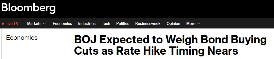 彭博社经济学家Taro Kimura称:“预计日本央行将宣布将开始减少购买日本国债。这不应该让人感到震惊——它早就表示愿意缩减资产负债表。”