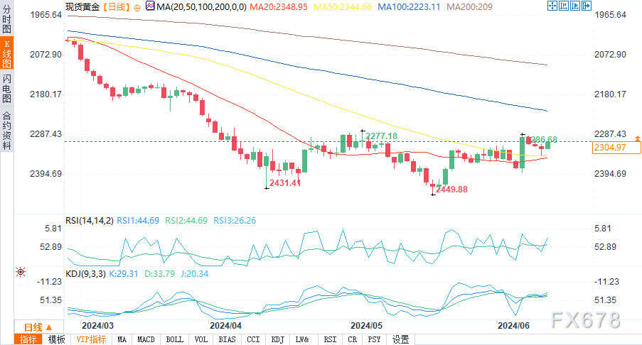 (现货黄金日图 来源:易汇通)现货黄金周四走软,徘徊在关键的50日移动均线2345.23美元下方。