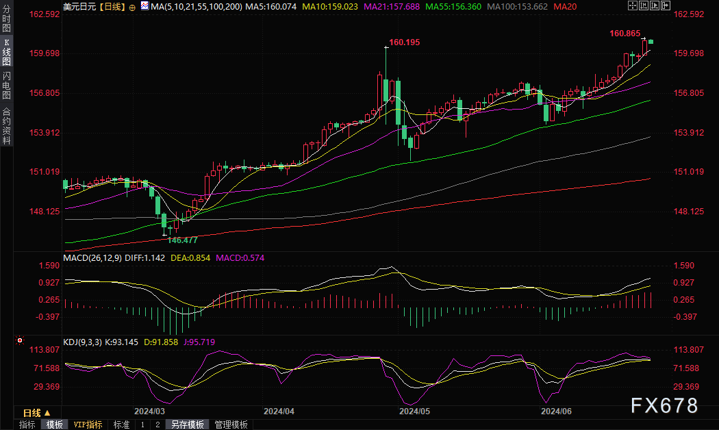 美元/日元周三收盘大涨0.72%,报160.76,盘中最高触及160.87,为1986年12月以来新高。今年迄今,美元/日元已上涨约14%。