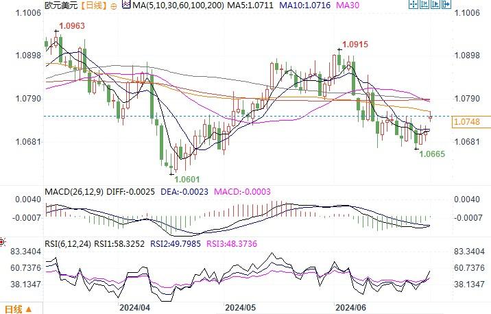 欧元兑美元日线图来源:易汇通北京时间7月1日10:55 欧元兑美元 报 1.0753/54。