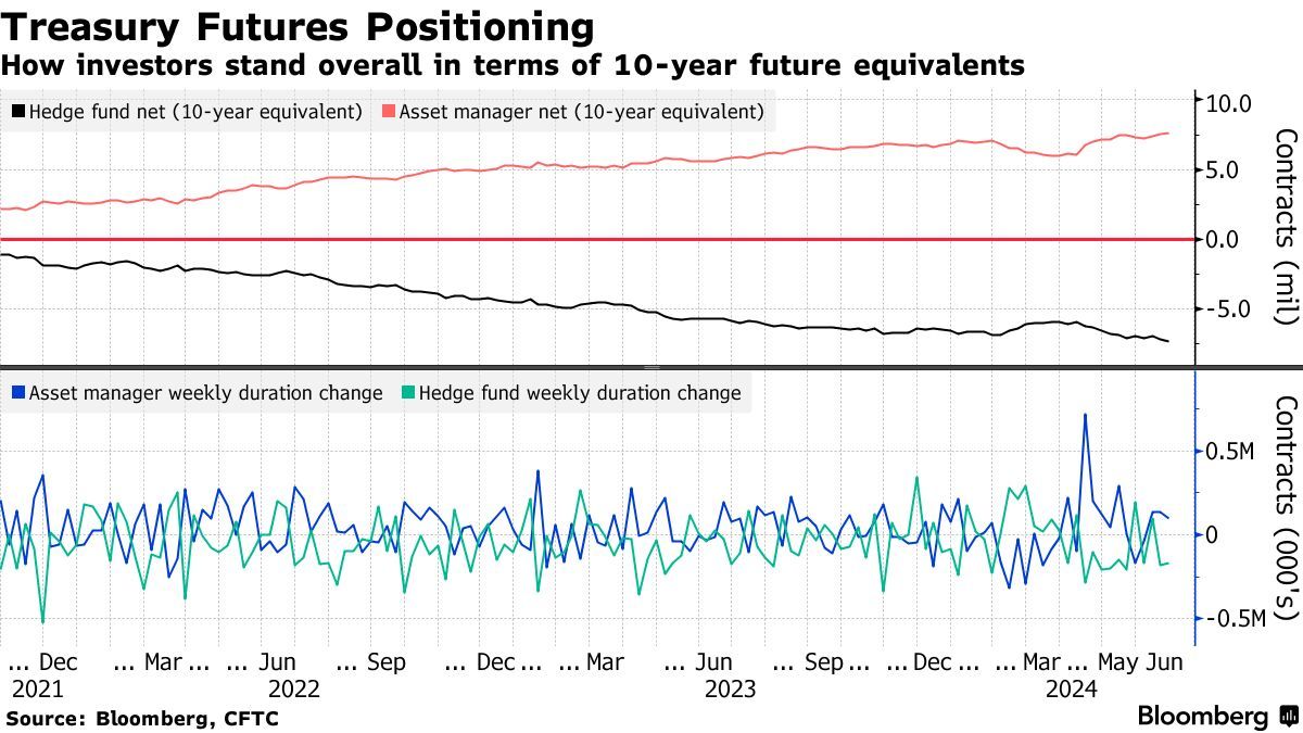 与此同时,根据CFTC的数据,截至6月25日当周,对冲基金将超长期债券的净空头头寸扩大至2022年以来的最高水平。