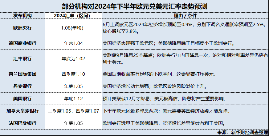 多数投行预计,随着欧元区进入降息通道,下半年欧元兑人民币将继续看跌,人民币兑美元汇率也有望走高。