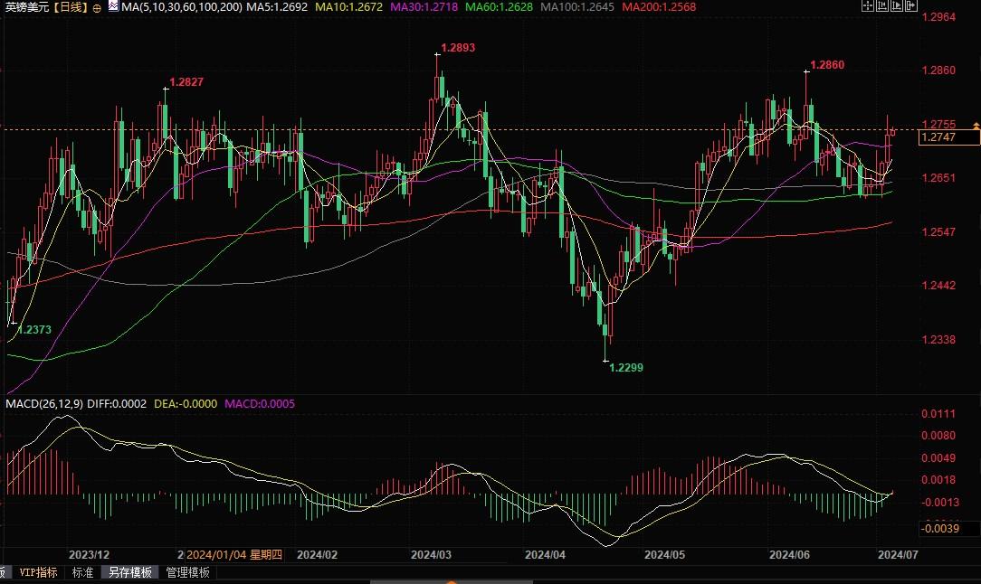 英镑兑美元日线图北京时间7月4日9:20,英镑兑美元报1.2746/48
