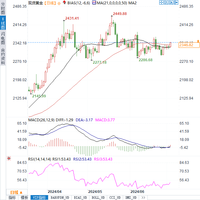 ——在欧洲时段,黄金市场迎来了一轮显著的涨势。周三(7月3日),现货黄金价格大幅攀升至2346美元/盎司,日内涨幅约17美元。这一现象背后,美联储主席鲍威尔的鸽派言论起到了关键作用,为金价提供了强劲的支撑。