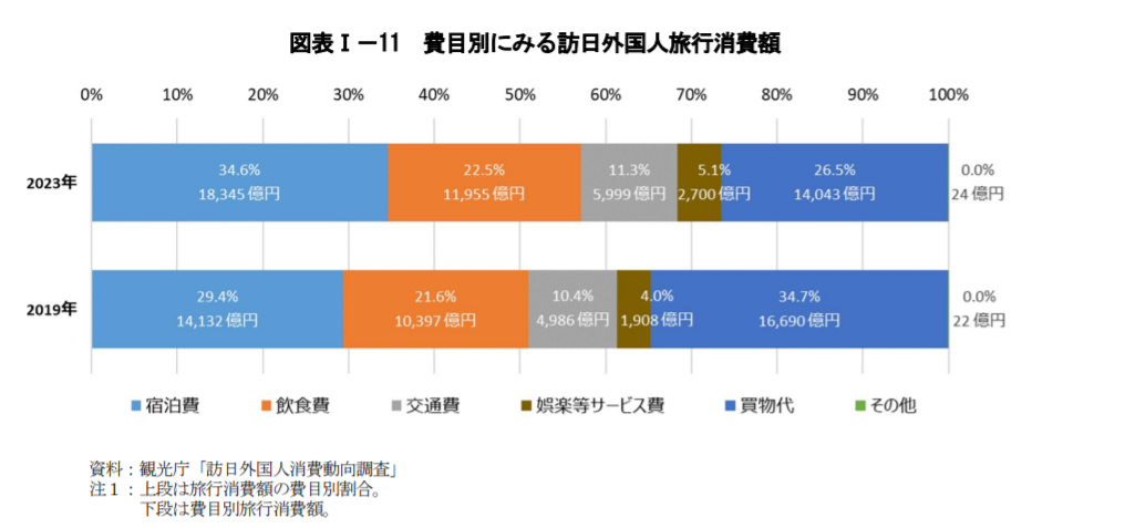 《白皮书》通过对比国际游客在日本的消费动向后发现,“体验消费正呈现增长迹象”。具体来说,与2019年相比,赴日游客在体育门票、博物馆门票等娱乐服务之上的花费增加了52%。日本观光厅发布的“外国人消费动向”数据显示,在娱乐服务方面的人均支出达到9097日元(约合418元人民币),远远超过2019年的5970日元;住宿费用比2019年增长59%,达到69746日元(约合人民币3206元);交通费用比2019年增长47%,达到23552日元(约合人民币1097元);购物支出为55192日元(约合人民币2537元),比2019年减少1%。