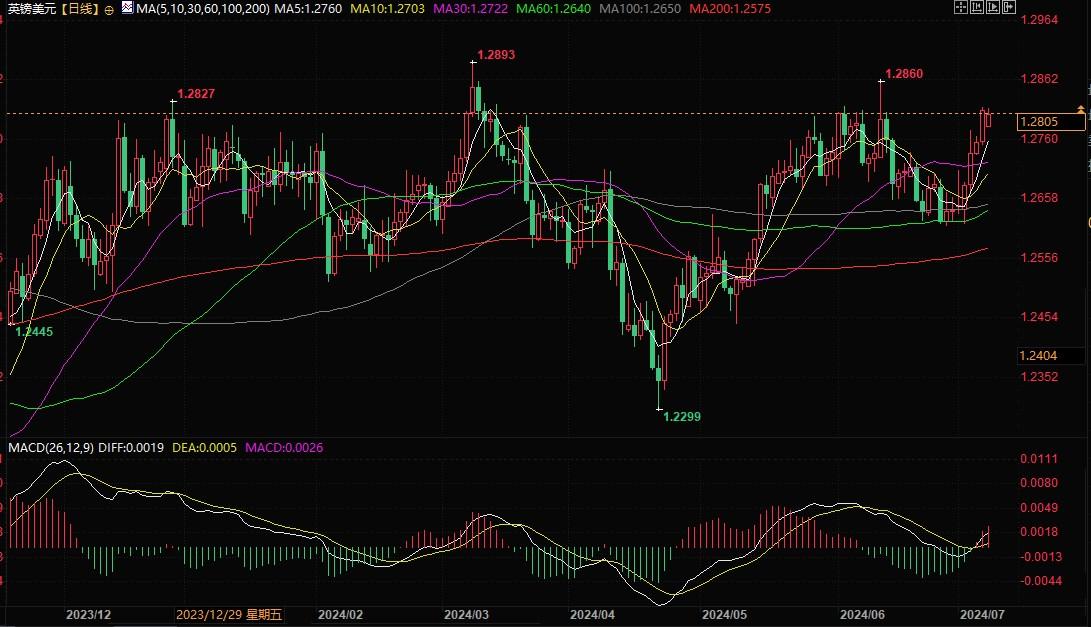 英镑兑美元日线图北京时间9月13日9:28,英镑兑美元报1.2805/06