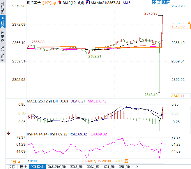 超出预期的非农数据提振了市场情绪,黄金瞬间跳水17美元,最低触及2348.49美元/盎司,但迅速反弹近28美元,最高触及2375.98美元/盎司,因超出预期的非农理论上会打压美联储降息的可能性,但是薪资增速放缓,重燃市场对美联储短期内降息的预期。