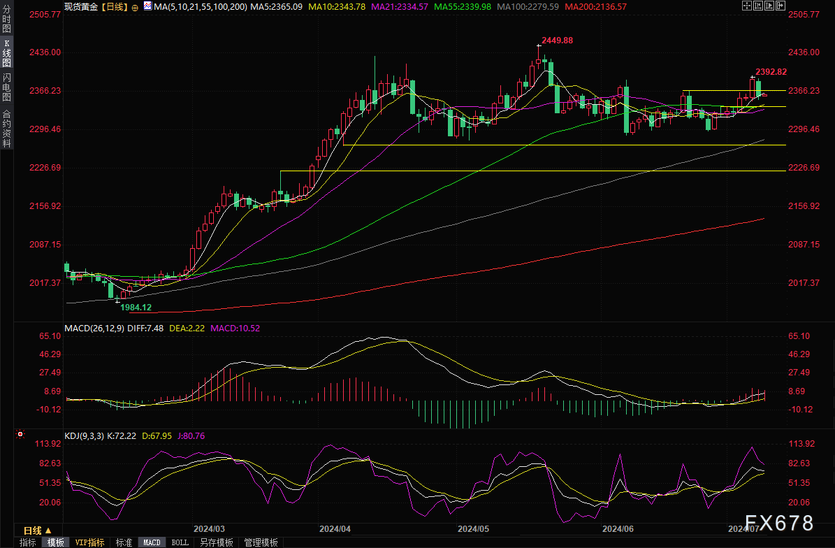 但地缘局势依然紧张,市场对美联储9月降息预期逐步升温,预计逢低买盘将给金价提供支撑,金价后市仍有机会上探2400关口附近阻力。