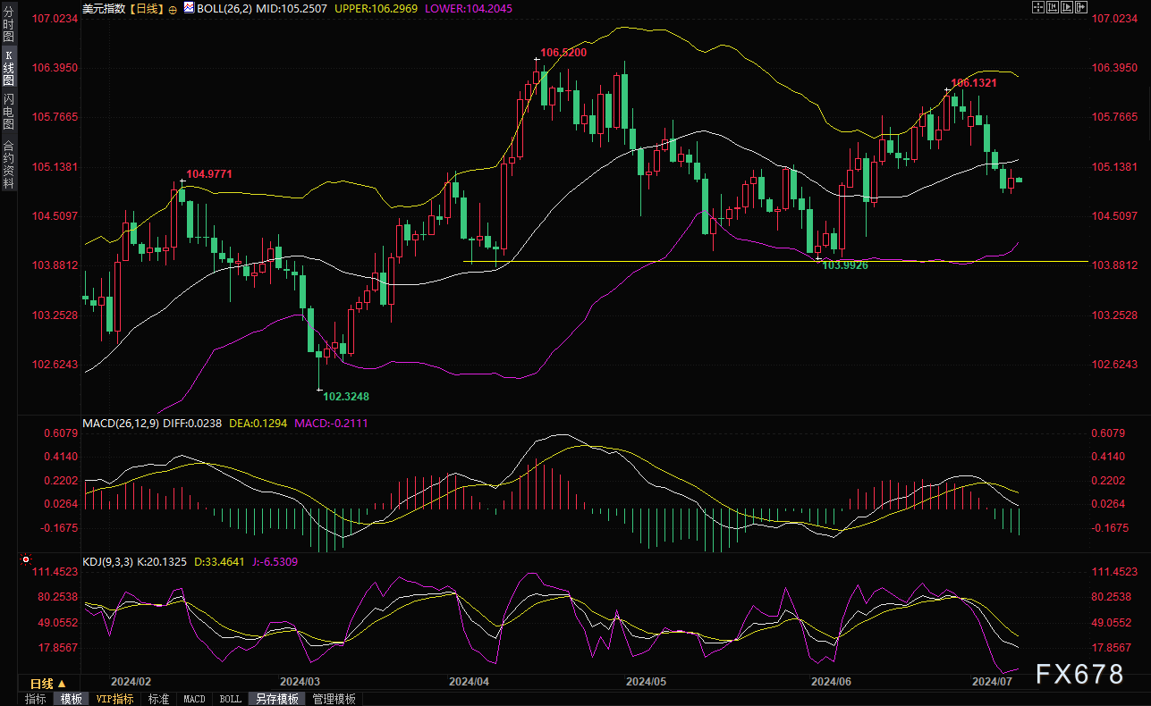 美元从三周多来的低点反弹0.13%,收报105.02,法国大选出现意外结果,给美元提供了反弹机会,但整体依然偏弱,此前周五的美国就业数据提振了对美联储将很快开始降息的押注。