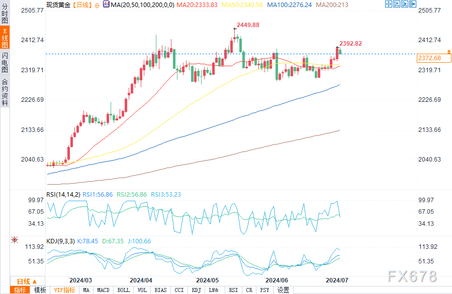 ——周一(7月8日),黄金价格盘中下跌,交投于2370美元上方。此前金价曾升至上周五5月22日以来的最高水平。