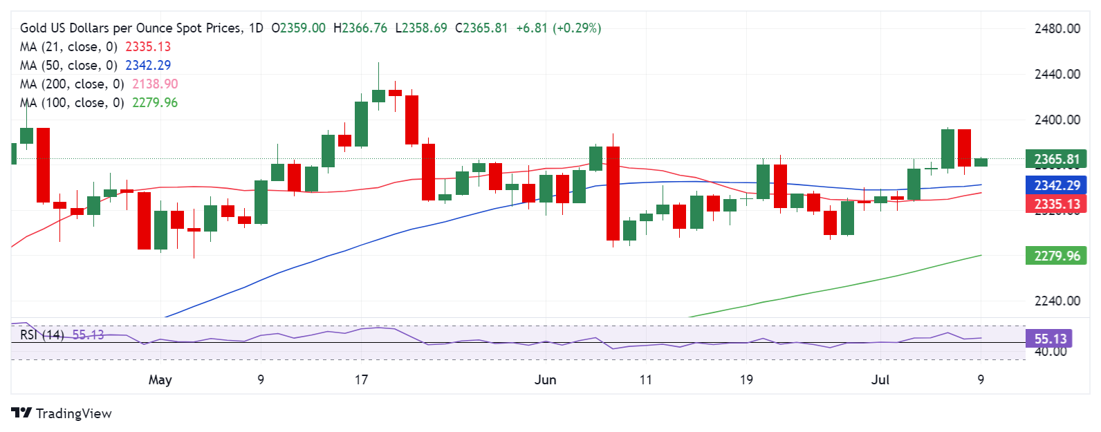 周二(7月9日)亚市尾盘,现货黄金维持日内反弹走势,目前金价位于2363美元/盎司左右。FXStreet高级分析师Dhwani Mehta周二最新撰文,对金价技术走势进行分析和预测。