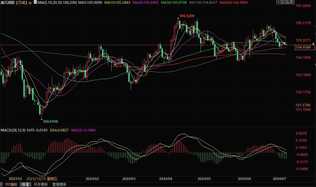 美元指数日线图北京时间7月11日8:56,美元指数报104.96