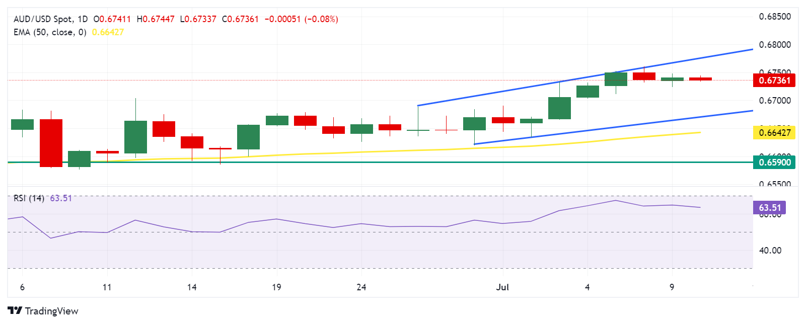FXStreet分析师Akhtar Faruqui表示,澳元/美元日线图分析显示,澳元/美元对在上升通道内盘整,表明看涨倾向。此外,14天相对强弱指数(RSI)仍保持在50水平以上,证实了看涨势头。