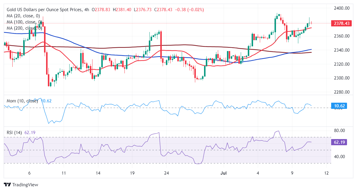 周四(7月11日)亚市盘中,现货黄金短线持续走高,一度上涨0.5%至2382.87美元/盎司。FXStreet首席分析师Valeria Bednarik撰文,对黄金技术前景进行分析。