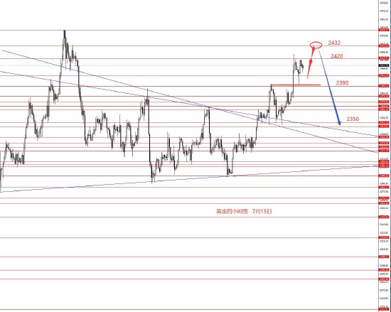 黄金上周正如预期2350以上继续看涨,唯一就是上周一回踩有点深,好在周二解盘再次2350继续做多,2420也到位了,周五走势也如预期2390以上继续短线看多。今日延用上周五思路。目前黄金还是处于上涨趋势当中,但本波段上方空间有限了,本周再创新高概率较大,但力度和空间上都不大,上方重点关注2432和2436区域一线强阻力,留意是否会转向下行。周初小幅向上运行,空间较小,保守者可以放弃,若顶部形态成立,下个波段可高空为主。激进者周初继续关注2390一线强支撑,以上还是小幅震荡向上运行的概率较大些,激进者操作策略:2400-2394区域做多,止损2384,目标看向2420和2432/2436区域。上方再留意转市信号吧,建议出现后右侧做空。控制仓量,严格止损。