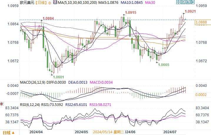 欧元兑美元日线图来源:易汇通北京时间7月16日11:49 欧元兑美元 报 1.0891/92。