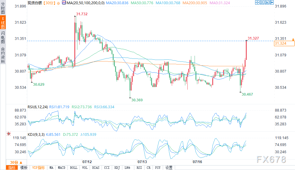 北京时间23:20,现货黄金报2457.58美元/盎司,涨幅1.46%。现货白银报31.259美元/盎司,涨幅1.97%。