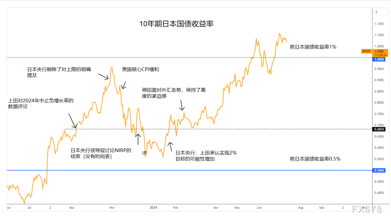 ——周二(7月16日)欧盘时段,美元/日元盘中震荡走高,报158.442,涨幅0.30%。鸽派鲍威尔导致美国国债收益率和日本国债收益率下降,对日元施加压力