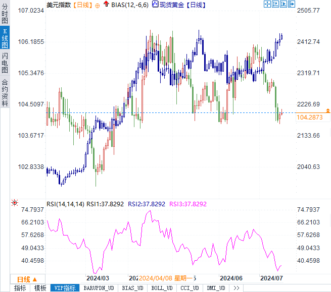 在特朗普遭遇未遂刺杀的消息传出后,市场迅速反应,避险资产如黄金、美元等价格纷纷上涨。现货黄金一度急涨至2415美元/盎司,显示出市场对此类事件的敏感性。技术图表显示,黄金价格的上升趋势仍然稳固,但交易者需警惕潜在的回调风险。